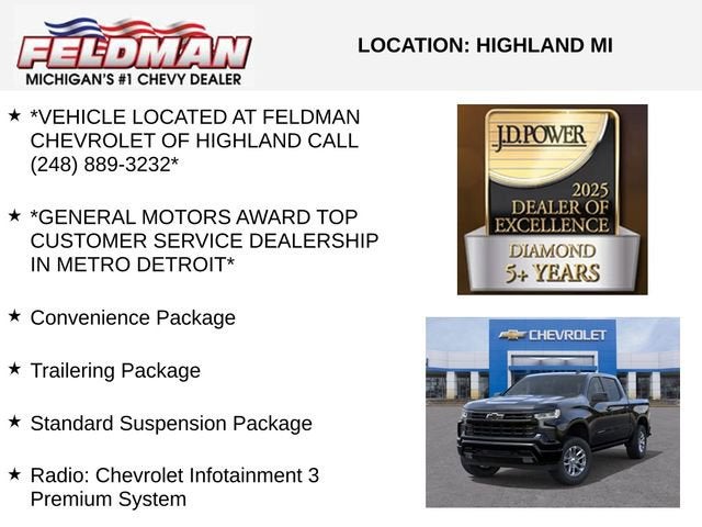 *VEHICLE LOCATED AT FELDMAN CHEVROLET OF HIGHLAND CALL (248) 889-3232*, *GENERAL MOTORS AWARD TOP CUSTOMER SERVICE DEALERSHIP IN METRO DETROIT*, 10-Speed Automatic, 4WD, Jet Black Cloth, 10-Way Power Driver Seat with Lumbar, 12.3 Multicolor Reconfigurable Digital Display, 120-Volt Bed Mounted Power Outlet, 120-Volt Interior Power Outlet, 6-Speaker Audio System, All-Star Edition, Apple CarPlay/Android Auto, Auto High-beam Headlights, Automatic Emergency Braking, Brake assist, Convenience Package, Dual Rear USB Ports (charge Only), Dual-Zone Automatic Climate Control, Electric Rear-Window Defogger, Forward Collision Alert, HD Rear Vision Camera, Heated Driver and Front Outboard Passenger Seats, Heated Power-Adjustable Outside Mirrors, Heated Steering Wheel, Hitch Guidance, Inside Rearview Mirror with Tilt, Integrated Trailer Brake Controller, Keyless Open and Start, Lane Keep Assist with Lane Departure Warning, LED Cargo Area Lighting, Manual Tilt/Telescoping Steering Column, Premium audio system: Chevrolet Infotainment 3 Premium, Radio data system, Radio: Chevrolet Infotainment 3 Premium System, Remote keyless entry, Remote Vehicle Starter System, Standard Suspension Package, Theft Deterrent System (unauthorized Entry), Trailering Package, Wireless Charging, Wrapped Steering Wheel.