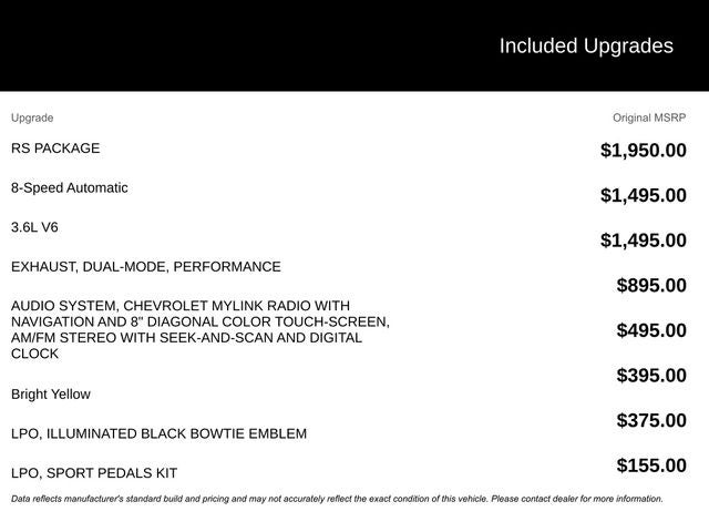 This Camaro 2LT 2LT is equipped with the desirable RS Package, which adds premium features like the 20 wheels, high-intensity discharge headlamps, and LED taillamps. The Preferred Equipment Group 2LT further enhances the driving experience with an array of premium amenities.
