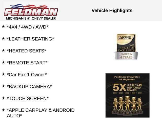 *4X4 / 4WD / AWD*, *LEATHER SEATING*, *HEATED SEATS*, *REMOTE START*, *Car Fax 1 Owner*, *BACKUP CAMERA*, *TOUCH SCREEN*, *APPLE CARPLAY & ANDROID AUTO*, *Bluetooth®*, *4G LTE WIFI / ONSTAR*, *SATELLITE RADIO SIRIUS XM*, *LOCAL TRADE*, *LOW MILES*, *VEHICLE LOCATED AT FELDMAN CHEVROLET OF HIGHLAND CALL (248) 889-3232*, *GENERAL MOTORS AWARD TOP CUSTOMER SERVICE DEALERSHIP IN METRO DETROIT*.CARFAX One-Owner. Odometer is 21270 miles below market average!Summit White 2023 Chevrolet TrailBlazer RSAWD 1.3L Ecotec Turbo DOHC SIDI w/VVT 26/30 City/Highway MPG 9-Speed Automatic*Descriptions of vehicles are often VIN generated and may not accurately represent the current condition or equipment for this specific vehicle * * Out of state consumers: See dealer for details regarding state registration fees and taxing * * See dealer for details regarding product add ons preinstalled on vehicle * * All qualifying vehicles have been through the GM Car Bravo certification & will include the extended warranty as per program guidelines *