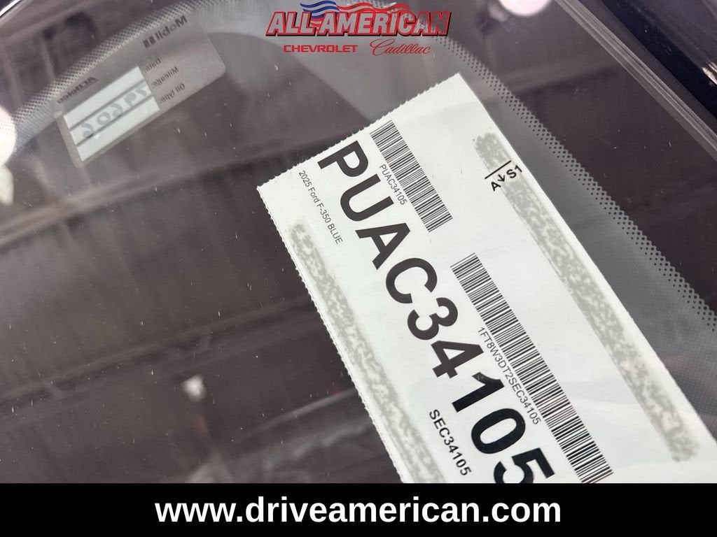 Blue Metallic 2025 Ford F-350SD XLT DRW 4WD 10-Speed Automatic Power Stroke 6.7L V8 DI 32V OHV Turbodiesel 4WD, 4-Wheel Disc Brakes, ABS brakes, Air Conditioning, Compass, Dual front impact airbags, Dual front side impact airbags, Emergency communication system: SYNC 4 911 Assist, Front anti-roll bar, Front reading lights, GVWR: 14,000 Lb Payload Package, Heated door mirrors, Illuminated entry, Low tire pressure warning, Outside temperature display, Overhead airbag, Overhead console, Passenger vanity mirror, Power door mirrors, Power steering, Power windows, Rear anti-roll bar, Rear reading lights, Rear step bumper, Remote keyless entry, Steering wheel mounted audio controls, Tachometer, Telescoping steering wheel, Tilt steering wheel, Traction control, Turn signal indicator mirrors.